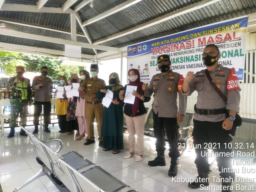 Kapolres Tanah Datar AKBP Rokhmad Hari Purnomo S.I.K melalui humas Polres AKP Desfi Arta kepada insan pers Selasa(22/6) di Batusangkar, warga masyarakat yang melakukan vaksinasi, mencakup, Pegawai Camat Pariangan 15 orang, Guru 19 orang, Perangkat Nagari 20 orang, BPR Pariangan 11 orang,Keluarga Polsek Pariangan 5 orang, dan 162 orang Masyarakat.