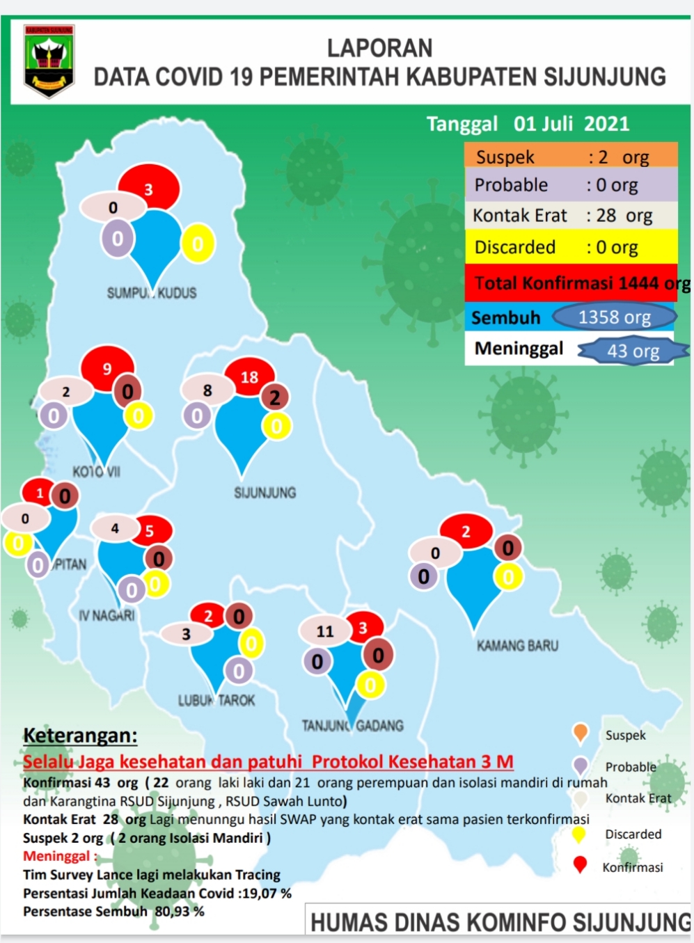 Hal itu disampaikan Kepala Dinas Kominfo Sijunjung, Sumatera Barat, selaku Juru Bicara Penanggulangan Penanganan Covid-19, Rizal Effendi, kepada Jurnalsumbar.Com via whatsappnya, Kamis (1/7/2021) sore.