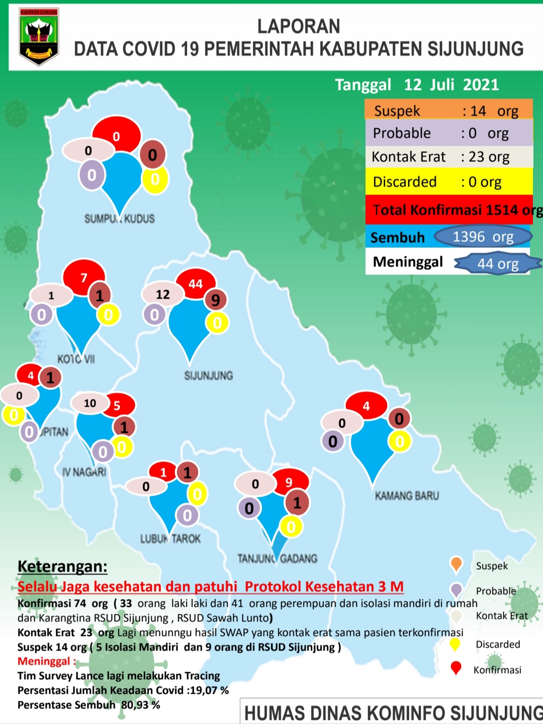 Hal itu disampaikan Kepala Dinas Kominfo Sijunjung, Sumatera Barat, selaku Juru Bicara Penanggulangan Penanganan Covid-19, Rizal Effendi, kepada Jurnalsumbar.Com via whatsappnya, Senin (12/7/2021) sore.