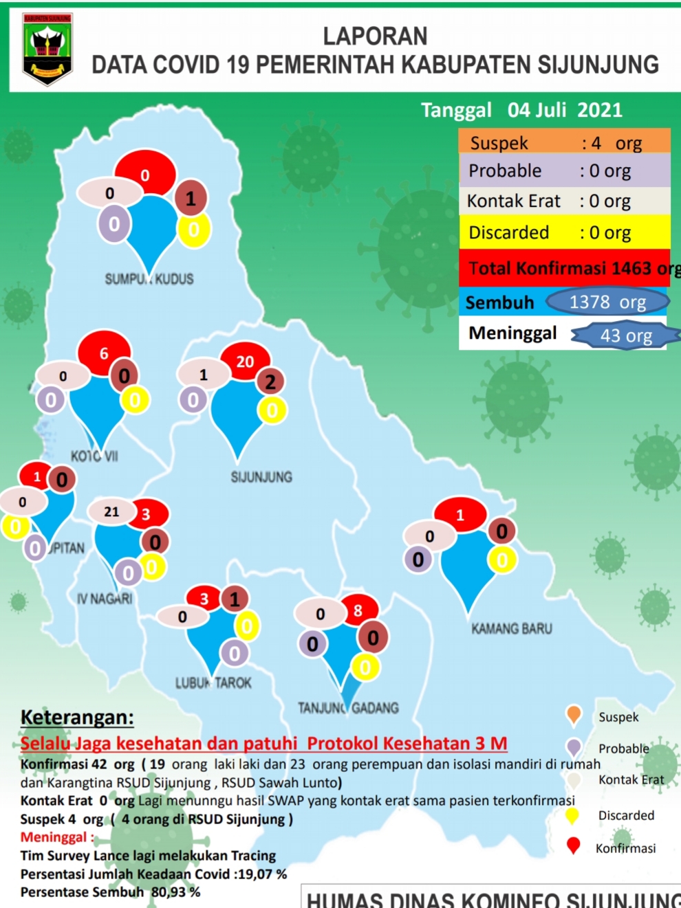 Hal itu disampaikan Kepala Dinas Kominfo Sijunjung, Sumatera Barat, selaku Juru Bicara Penanggulangan Penanganan Covid-19, Rizal Effendi, kepada Jurnalsumbar.Com via whatsappnya, Minggu (4/7/2021) siang.