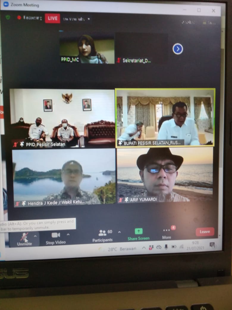 JURNAL SUMBAR | Painan – Ditengah kondisi PPKM yang di laksanakan di Sumatera Barat, PPID Utama Kabupaten Pesisir Selatan tidak patah arang untuk tetap melaksanakan Rapat Koordinasi PPID Pembatu secara zoom meeting selama dua hari Rabu dan Kamis, tanggal 21 dan 22 juli 2021.
