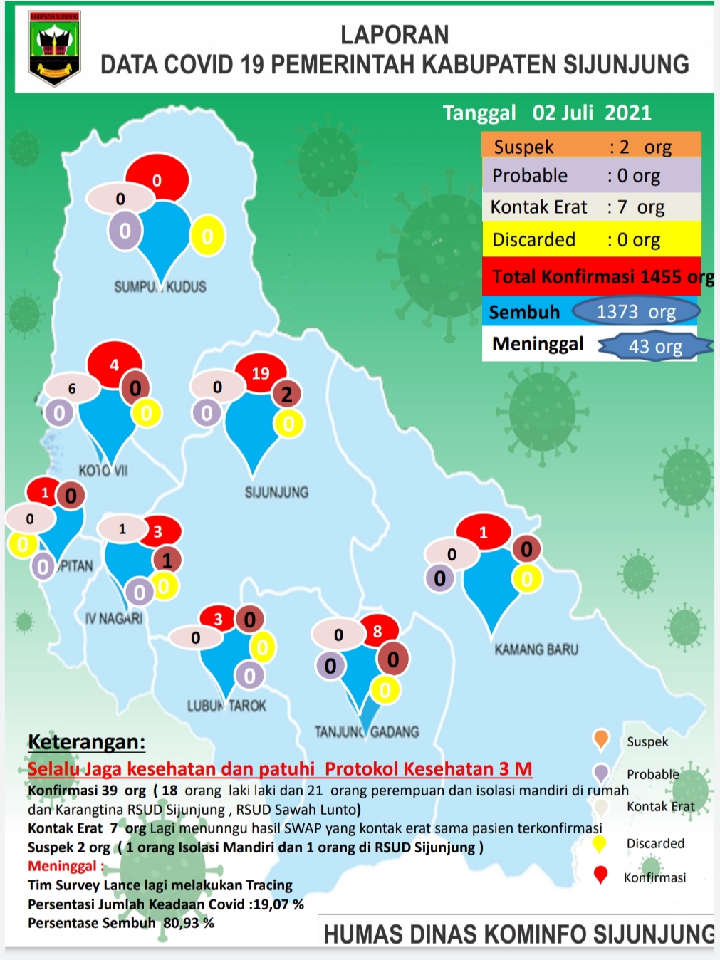 Hal itu disampaikan Kepala Dinas Kominfo Sijunjung, Sumatera Barat, selaku Juru Bicara Penanggulangan Penanganan Covid-19, Rizal Effendi, kepada Jurnalsumbar.Com via whatsappnya, Jumat (2/7/2021) sore