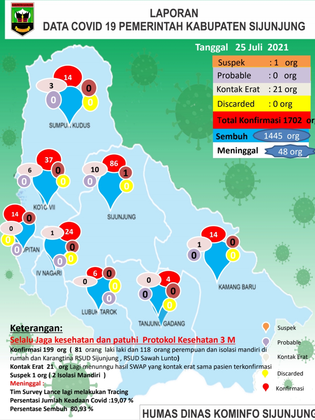 Hal itu dibenarkan Kepala Dinas Kominfo Sijunjung, Sumatera Barat, selaku Juru Bicara Penanggulangan Penanganan Covid-19, Rizal Effendi, Jurnalsumbar.Com via whatsappnya, Minggu (25/7/2021) malam.