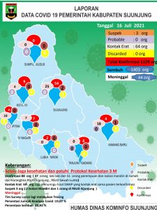 JURNAL SUMBAR | Sijunjung – Kasus Covid-19 terus bertambah. Pada Jumat, (16/7/2021) ini, ada penambahan enam orang lagi warga di Kabupaten Sijunjung, Sumatera Barat, warga terpapar positif Covid-19.
