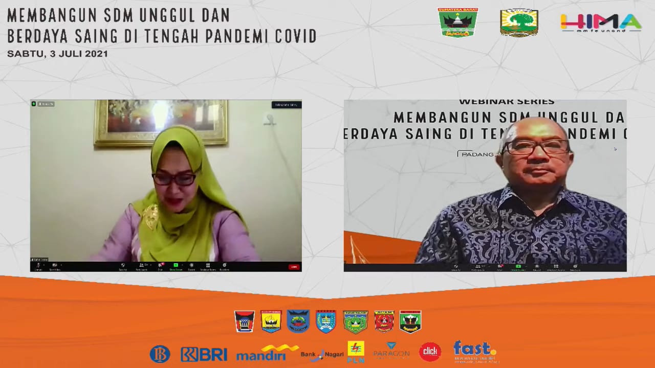 Fadly Amran Walikota Padang Panjang, Benny Dwifa Bupati Sijunjung dan Wakil Walikota Payakumbuh Erwin Yunaz yang terkenal dengan The City Of Randang merupakan pembicara lainnya.di webinar yang dipandu oleh Dosen MM FE Unand Dr. Rahmi Fahmy yang memang terkenal kepakarannya perihal SDM ini.