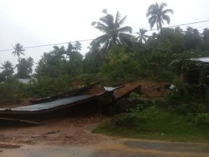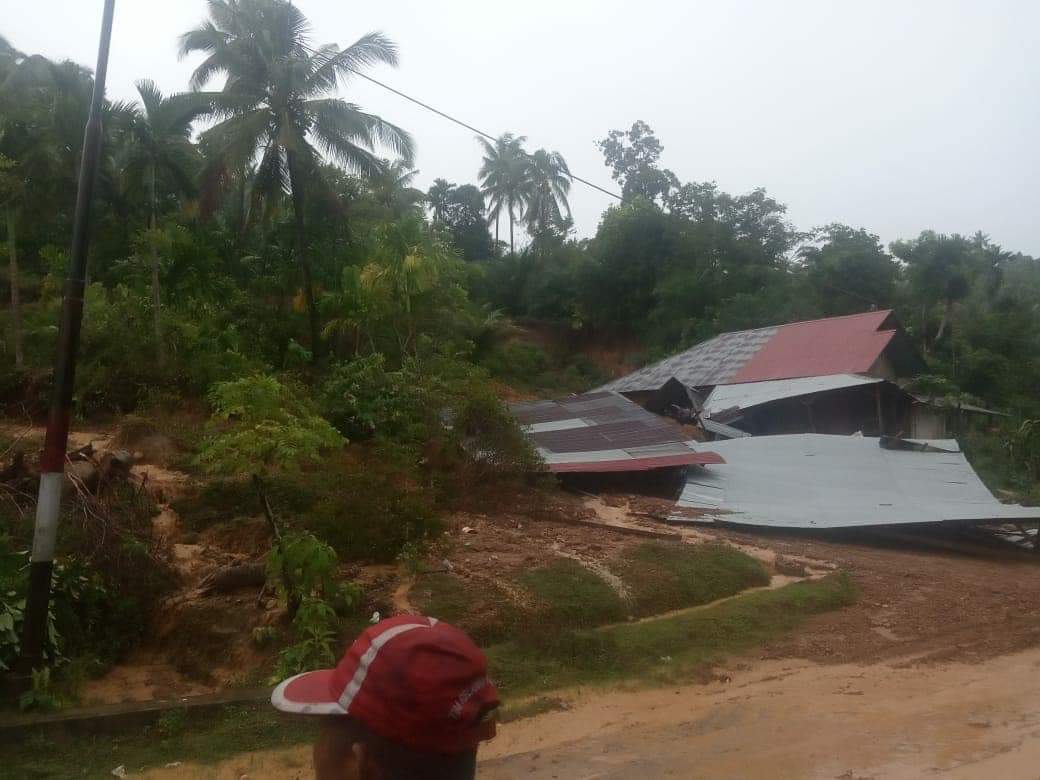 JURNAL SUMBAR | Pesisir Selatan – Dua buah rumah milik warga di Ujung Batu Air Tambang, Nagari Nyiur Melambai Pelangai, Kecamatan Ranah Pesisir, Kabupaten Pesisir Selatan, Hancur Dihantam Longsor.