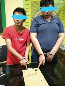 Di lokasi pertama, hari Jumat (1/10/2021) pukul 21.00 Wib tim opsnal sapu jagat Sat ResNarkoba mengamankan dua orang tersangka berinisial SJ (23) dan BS (29) warga