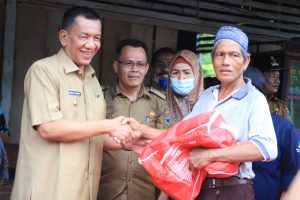 Dalam kunjumgan tersebut bupati menyerahkan bantuan kepada masing masing KK, berupa famili kit, terpal, tikar, kasur, kit ware, makanan siap saji, selimut 2 lembar, makanan anak-anak berupa roti dua paket dan lainnya.