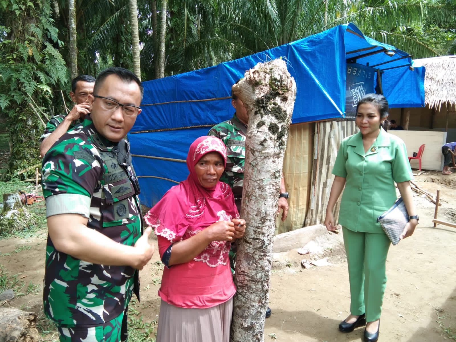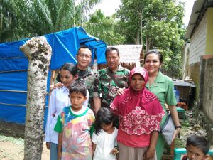 Mendapatkan laporan dari Danramil Surantih jika ada satu keluarga yang tinggal di rumah reot atau tenda di kampung Amping Parak, Nagari Amping Parak, Kecamatan Sutera. Dandim 0311/ Pessel Letkol Inf. Moch Suherli bersama Ny.Deyanti Ayu Marlisa Suherli, melanjutkan bakti sosial nya.