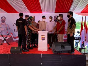 Hadir membuka gelaran Gebyar Sumdarsin di lapangan Mapolda Sumbar, Sabtu (08/01/2021), Gubernur Sumbar, Buya Mahyeldi, menyampaikan apresiasi atas inisiasi dan gagasan Forkopimda Provinsi mewujudkan herd immunity di Sumatera Barat.