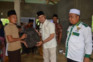 Adapun yang diberikan itu berupa tas, kemudian, satu kodi buku tulis, satu kotak pena, satu buah rol, satu buah pensil dan satu buah penghapus.