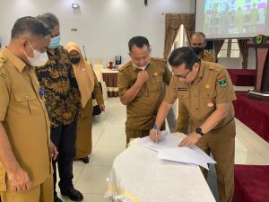 Acara Forum Perangkat Daerah dalam rangka sinkronisasi rencana strategis 2021-2026 inipun ditutup dengan Penandatanganan Berita Acara Forum Perangkat Daerah oleh Kepala Dinas Kominfotik Kabupaten Kota dan Provinsi. (Mc Prov Sumbar).Dinas Kominfotik Sumbar