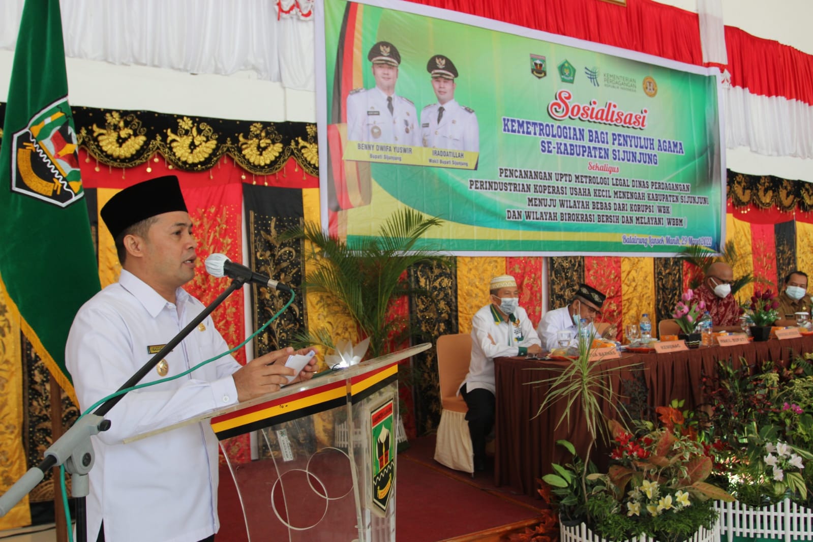 JURNAL SUMBAR | Sijunjung – Wakil Bupati, H. Iraddatillah, S.Pt membuka secara resmi membuka acara sosialisasi kemetrologian bagi Penyuluh Agama se-Kabupaten Sijunjung di Balairung Lansek Manih Kantor Bupati Sijunjung pada Selasa, 29 Maret 2022.