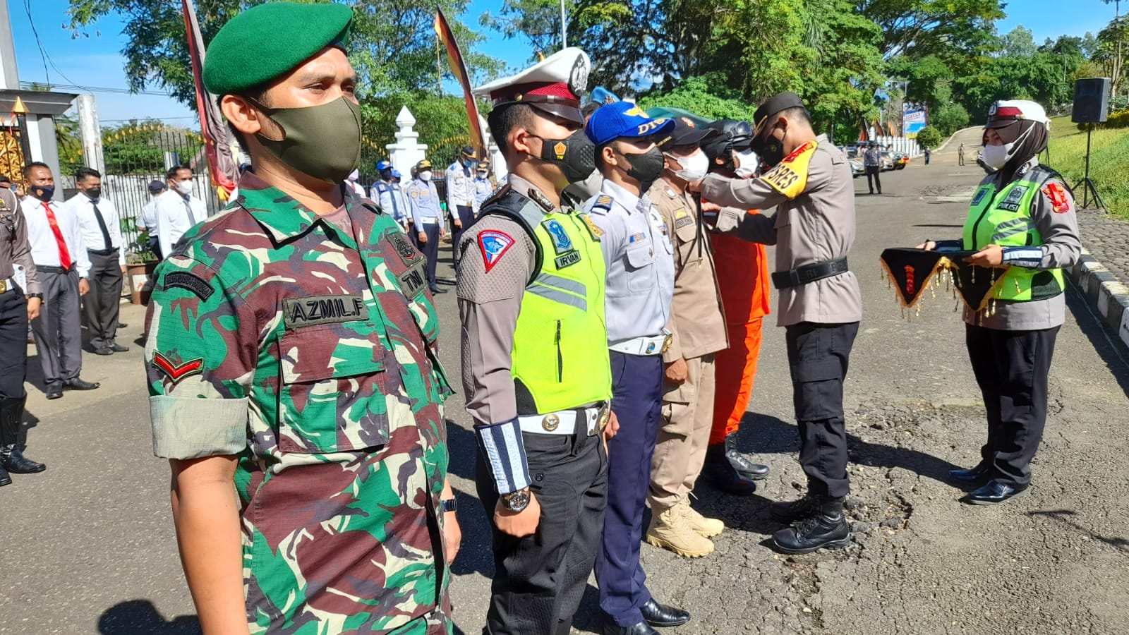 JURNALSUMBAR| Batusangkar – Apel Gelar Pasukan Operasi Ketupat Singgalang Tahun 2022 dilaksanakan, Jumat(22/4) dengan pembina upacara Kapolres Tanah Datar AKBP Ruly Indra Wijayanto S.I.K dengan komandan Upacara Ipda Rido S.H Kanit regident lantas polres Tanah Datar di halaman Istano Pagaruyung.