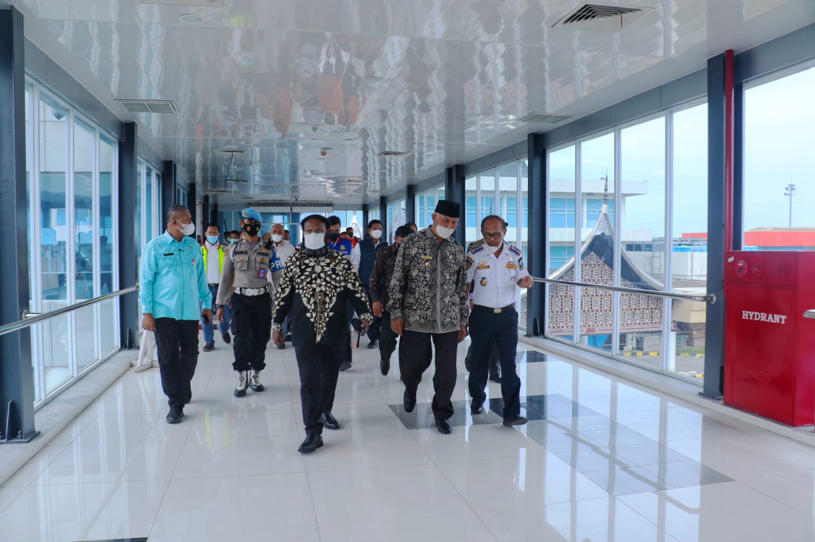 Usai peninjauan, rombongan bersama gubernur menggelar rapat di Ruang VIP BIM. Dalam rapat tersebut Gubernur menyampaikan pihaknya telah menginstruksikan untuk menyiapkan sarana dan prasarana transportasi dan terus memastikan penerapan protokol kesehatan (prokes) sesuai dengan ketentuan dari Satgas Covid-19.