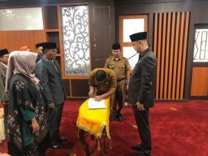 Pelantikan dan Pengambilan sumpah/janji jabatan Administrator dan jabatan Fungsional melalui mekanisme penyetaraan di lingkungan Pemerintah Kabupaten Sijunjung sebanyak enam orang yang terdiri dari lima orang Dinas Sosial dan satu orang dari inspektorat.
