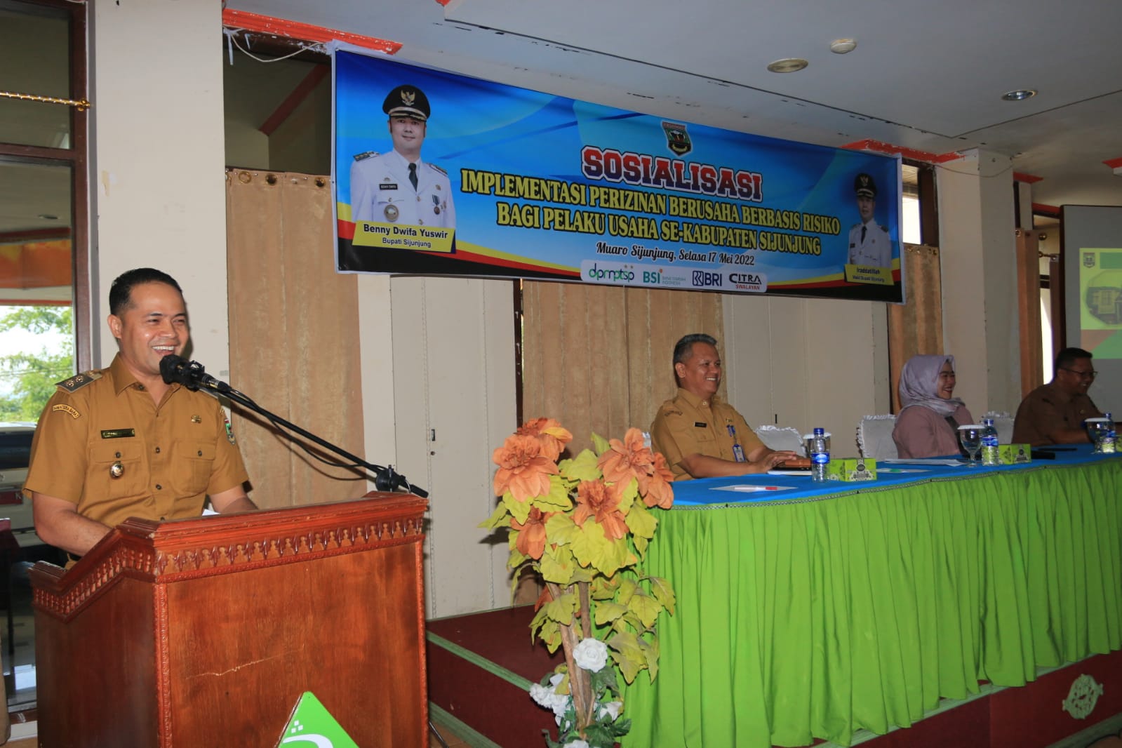 Diprakarsai DPMTSP, Wabup Sijunjung Buka Sosialisasi Implementasi Perizinan Berusaha Berbasis Risiko bagi Pelaku Usaha