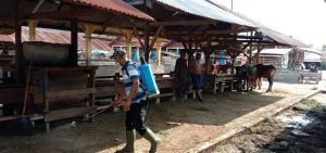 Tim juga menyampaikan kepada pedagang jika situasi meningkat akan ada perintah Lokdown untuk areal pasar ternak dan terhadap Ternak yang masih berada didalam tidak bisa keluar dan begitu juga dari luar kedalam areal Pasar Ternak.