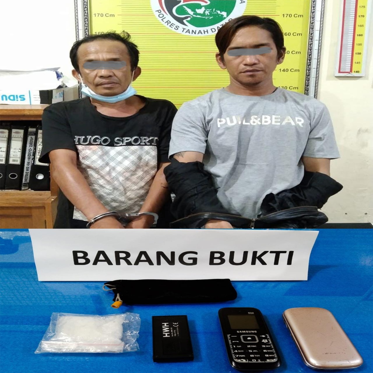 Dari penangkapan dan penggeledahan terhadap tersangka disita satu paket sedang narkoba jenis shabu, ditemukan dalam laci sepeda motor milik terduga.Mempertanggung jawabkan tindakannya kedua pelaku dan BB ( Barang Bukti) di bawa ke Polres Tanah Datar untuk pemeriksaan.