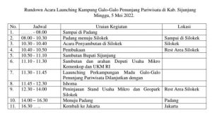 “Kegiatan utama Deputi Bidang Usaha Mikro Kementerian Koperasi dan UKM RI, Ir. Eddy Satriya, M.A ini, direncanakan akan melounching kampung madu galo-galo yang ada di Nagari Silokek. Kegiatan tersebut salahsatu penunjang pariwisata Geopark Silokek,”ucap mantan Kakan Kesbangpol Limas dan mantan Camat Kamangbaru itu.