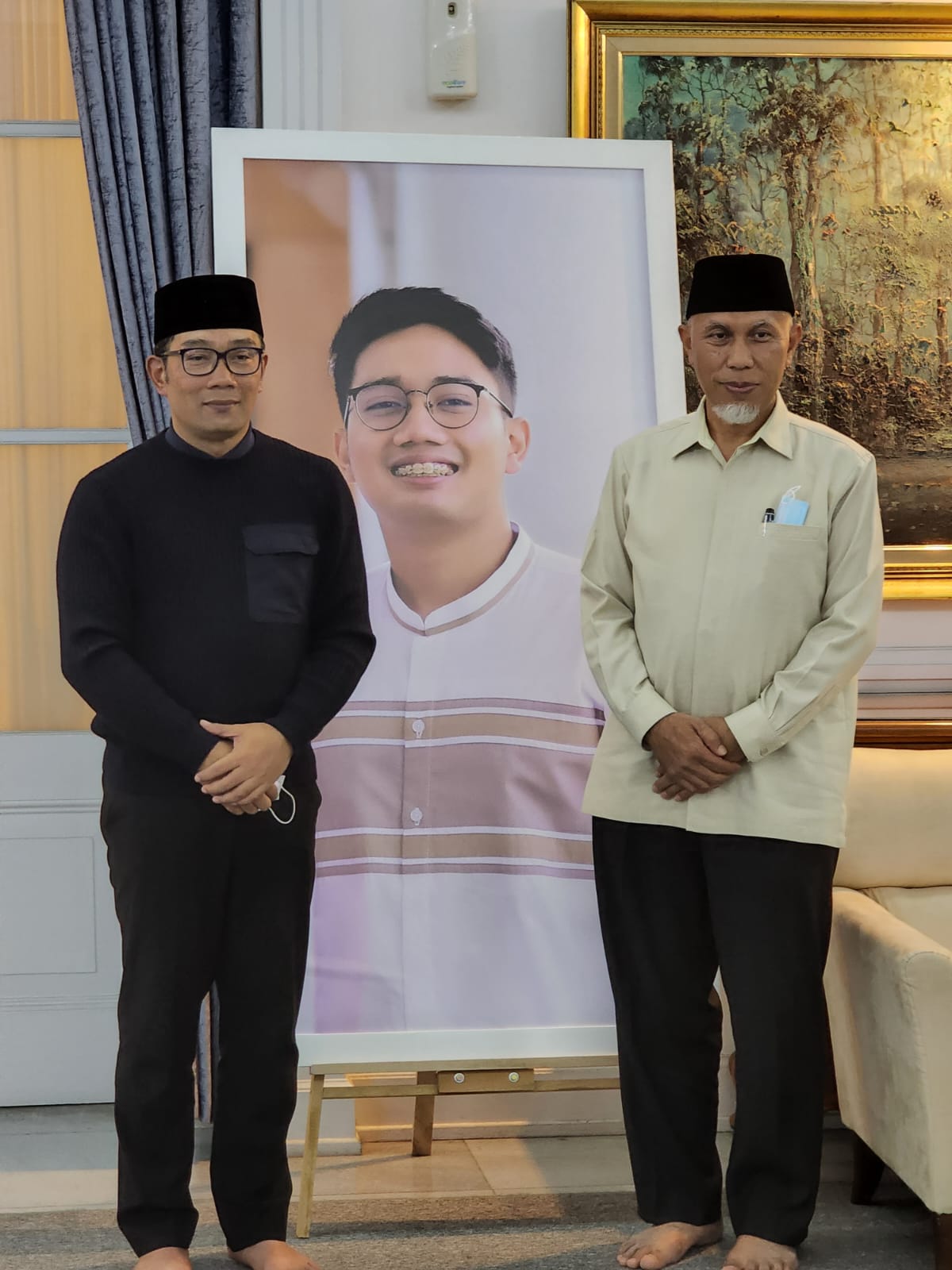 Suasana duka masih terasa di lingkungan kediaman rumah dinas Gubernur Jawa Barat itu, terlihat dari deretan panjang karangan bunga yang bertuliskan ucapan belasungkawa yang terpampang di halaman Gedung Pakuan. Dalam kesempatan yang singkat itu, Buya Mahyeldi turut menyampaikan duka yang sangat mendalam kepada beliau, “atas nama pribadi dan keluarga, kami turut berduka atas kepergian Eril, Insya Allah Ananda syahid, dan menjadi tabungan Kang Emil di sorga,” Ucap Buya Mahyeldi.