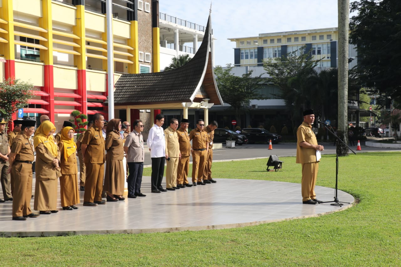 JURNAL SUMBAR | Padang – Memimpin upacara peringatan Hari Anti Narkoba Internasional (HANI) tahun 2022, di Halaman Kantor Gubernur Sumatera Barat (Sumbar), Senin (4/7/2022) Gubernur Mahyeldi, mengajak Aparatur Sipil Negara (ASN) untuk meningkatkan kepedulian terhadap penyalahgunaan narkoba di lingkungan kerja, tempat tinggal, hingga rumah tangga masing-masing.