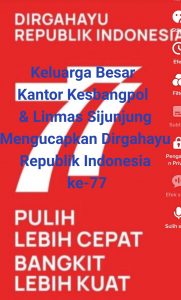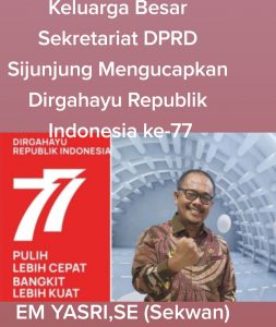 Dirgahayu Republik Indonesia ke-77 BERITA By Pemred Saptarius Last updated 8 Agu 2022 239 JURNAL SUMBAR – Tepat pada 17 Agustus 2022 mendatang, Negara Kesatuan Republik Indonesia (NKRI) Merayakan Hari Ulang Tahun RI ke-77, berbagai ungkapan Dirgahayu itupun disampaikan. ì Kabupaten_SijunjungSumatera_Barat 239 Share FacebookTwitterWhatsAppPintereste-mel