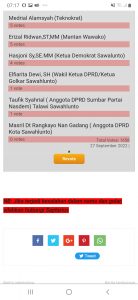 Selain itu juga ada nama Taufik Syahrial “Tarjok” ( Anggota DPRD Sumbar Partai Nasdem) asal Talawi Sawahlunto meraih 1 votes dan Masril Dt Rangkayo Nan Gadang ( Anggota DPRD Kota Sawahlunto) hingga saat berita ini tayang belum meraih dukungan (0 votes).