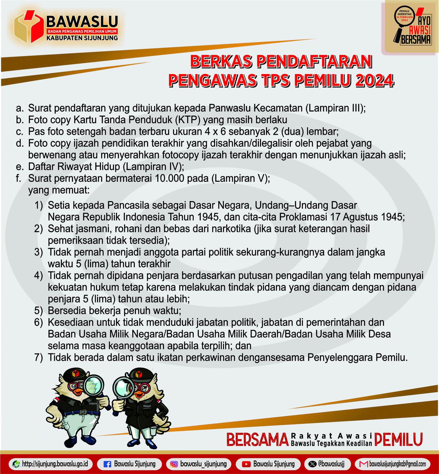 “Bawaslu membutuhkan 762 orang pengawas untuk 762 TPS yang tersebar di 61 nagari dan satu desa di Kabupaten Sijunjung untuk menjadi tenaga PTPS yang akan menjadi ujung tombak pengawasan di TPS pada 14 Februari 2024 mendatang,” kata Ketua Bawaslu Sijunjung, Gusni Fajri, Selasa (26/12/2023).