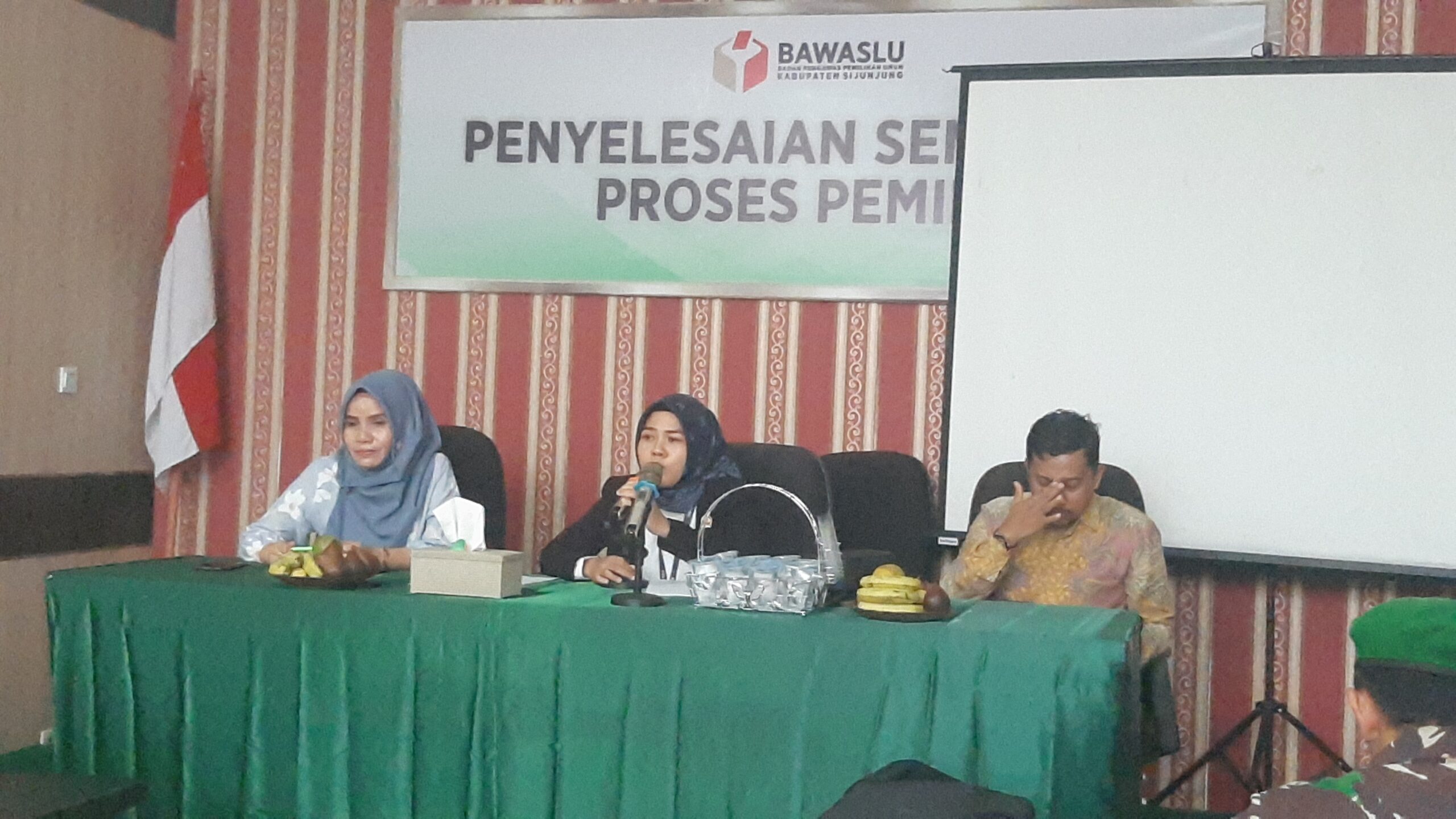 Ketua Bawaslu Sijunjung, Gusni Fajri,SE, didampingi Heru Rahmat Julisa, S.Kom dan Sekretaris Bawaslu Sijunjung, Dewi Lusianita.