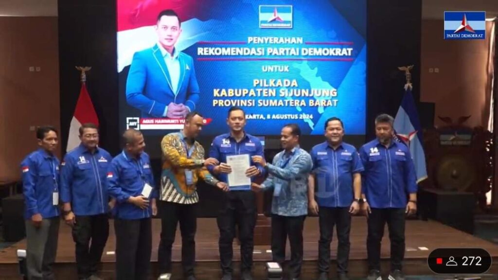 JURNAL SUMBAR | Sijunjung – Bupati Sijunjung, Sumatera Barat, Benny Dwifa Yuswir, S.STP., M.Si., kembali mendapat dukungan dari partai politik (Parpol) untuk maju sebagai calon bupati (Cabup) Sijunjung di Pilkada serentak 2024. Setelah Partai Perindo dan Golkar, kini giliran partai besutan Bambang Susilo Yudhoyono (SBY) berlambang Mersi itu mendukung dan mengusung Benny (petahana-red) sebagai Cabup … Lanjutkan membaca Setelah Perindo dan Golkar, DPP Partai Demokrat Usung Benny Dwifa Yuswir sebagai Cabup Sijunjung 2024