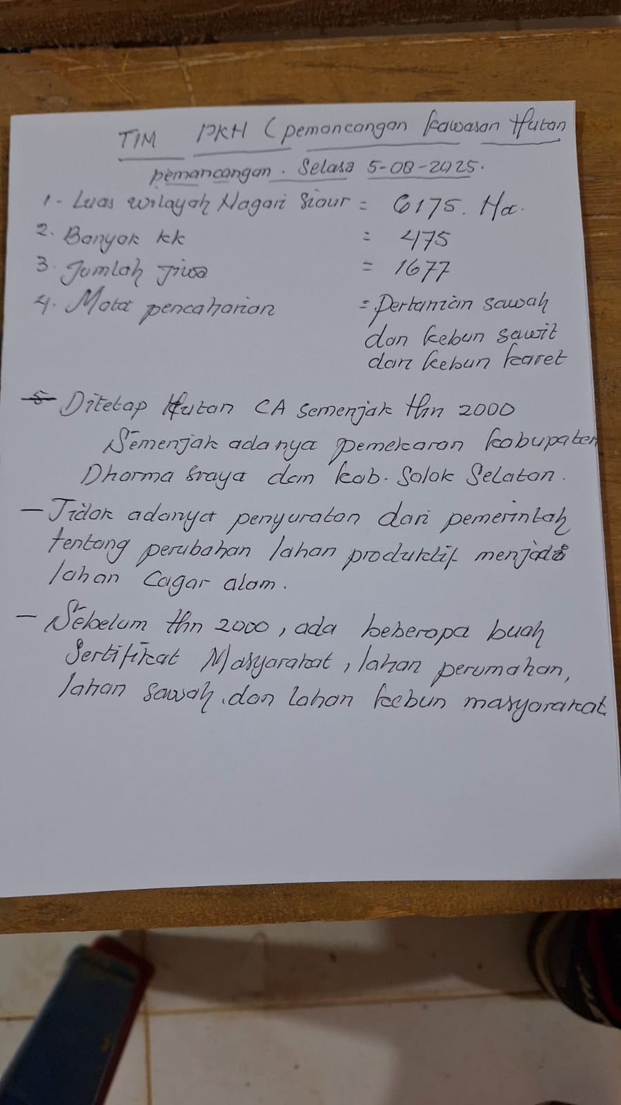 “Saya sampaikan pada Tim Satgas PKH dan BPN serta seorang kolonel dari Jakarta yang tergabung dalam Tim Satgas PKH tersebut, bahwa separoh dari Nagari Siaur ini adalah Cagar Alam dan termasuk pemukiman penduduk,”kata Walinagari Siaur, Atmansyah, S.Sos., kepada Jurnalsumbar.Com, Rabu (20/8/2025) via telepon selulernya.