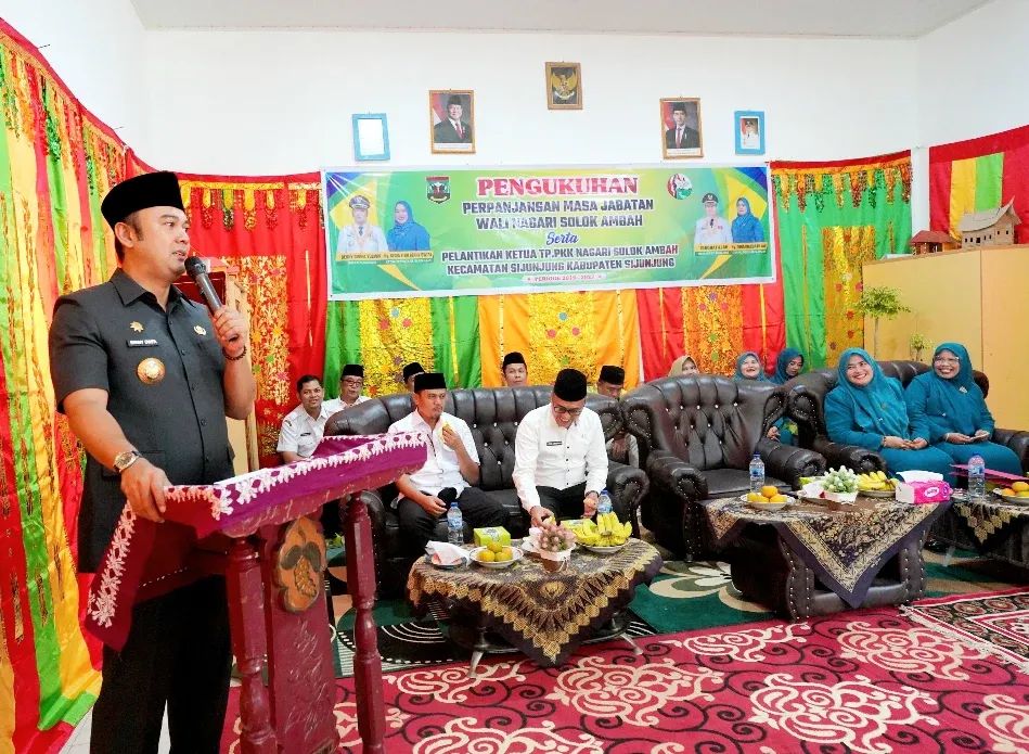JURNAL SUMBAR| Sijunjung – Bupati Sijunjung, Sumatera Barat, Dr. Benny Dwifa Yuswir, S.STP., M.Si.,mengukuhkan kembali perpanjangan masa jabatan Walinagari Solok Ambah, Kecamatan Sijunjung, Husni Thamrin, untuk masa jabatan pediode 2019-2025 menjadi 2019 – 2027 yang bertempat di SD Negeri 12 Solok Ambah pada Rabu 20 Agustus 2025 kemarin.