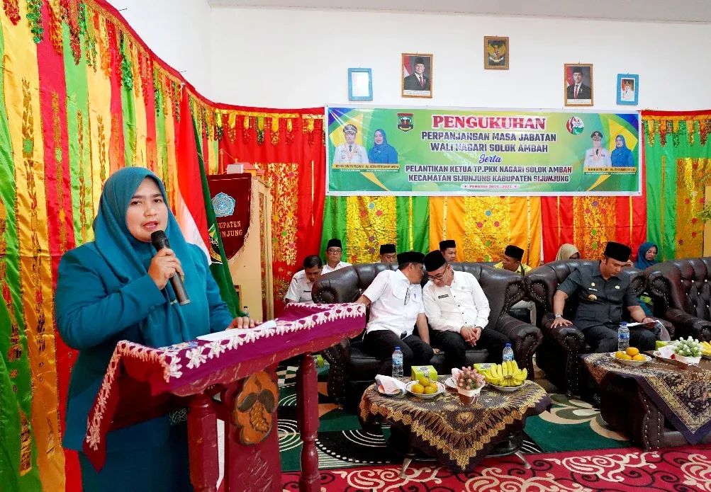 Bersamaan dengan itu, Staf Ahli TP PKK Kabupaten Sijunjung, Ny. Dona Iraddatillah juga melantik ketua TP PKK Nagari Solokambah.