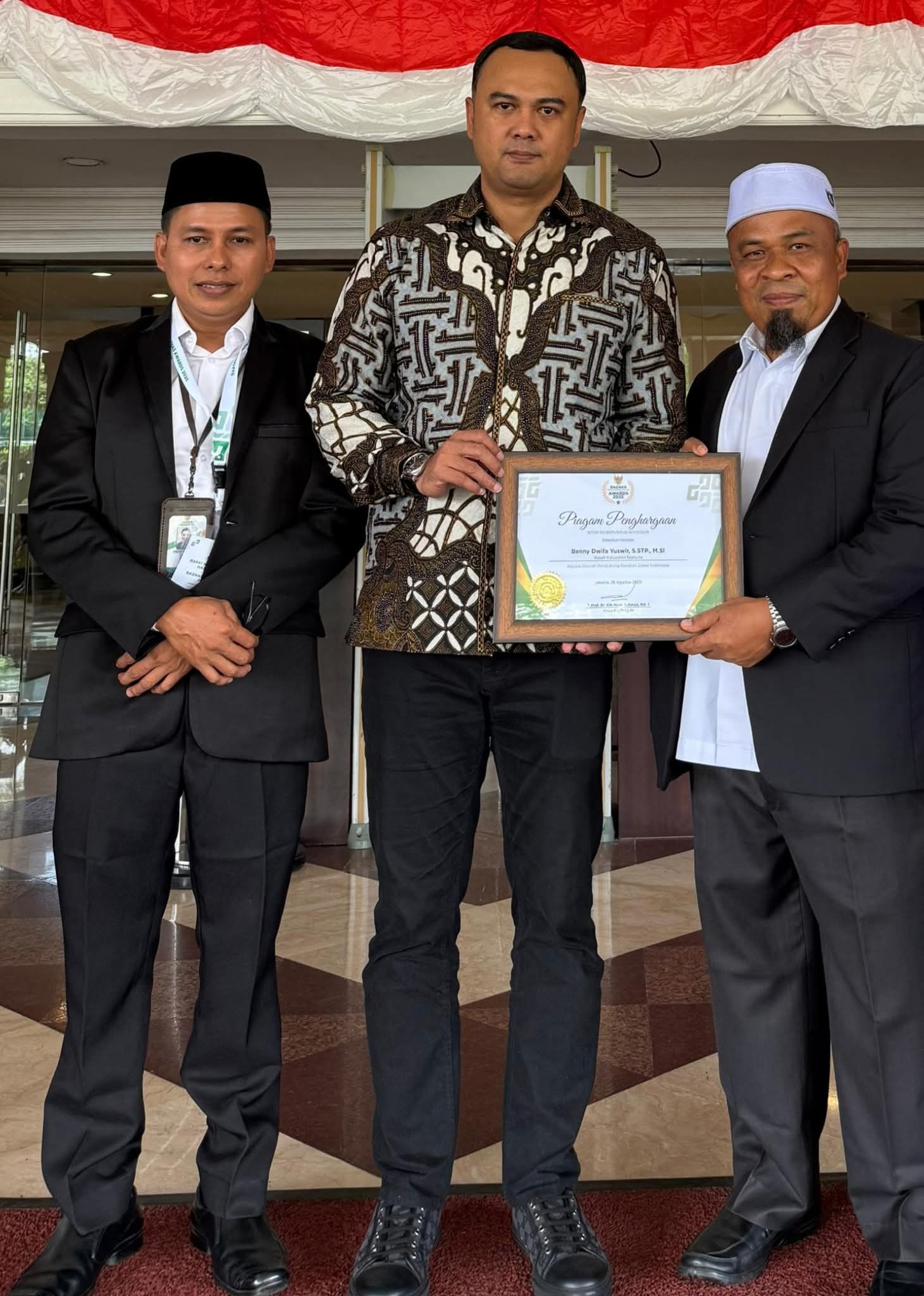 Penghargaan bergengsi ini diserahkan oleh Wakil Ketua BAZNAS RI, Mokhamad Mahdum di sela acara Rakornas BAZNAS di Hotel Mercure Jakarta, pada Kamis, 28 Agustus 2025.