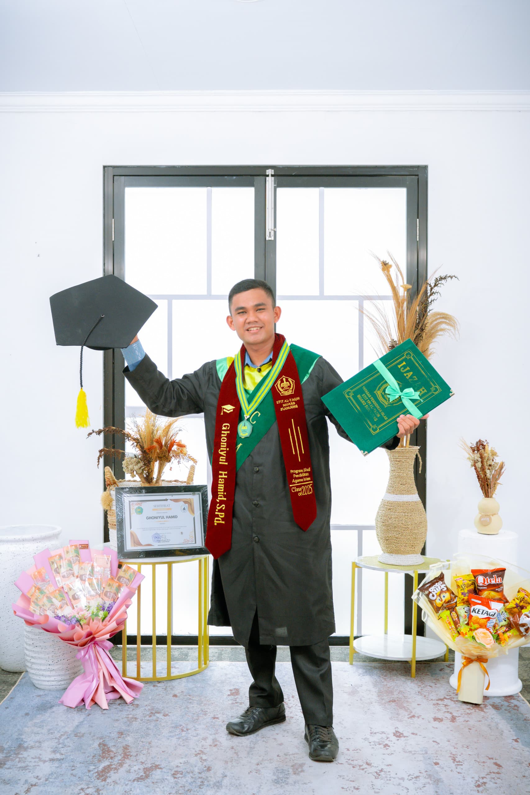 MENJADI ORANG YANG BERGUNA BAGI ORANG LAIN adalah Motto kehidupan yang dipegang erat oleh Ghoni Yul Hamid sang peraih Wisudawan terbaik II dari 18 orang Wisudawan/wati STIIT Al-Yaqin yang diwisuda pada 24 Juli 2025 di Gedung Pancasila Muaro Sijunjung.