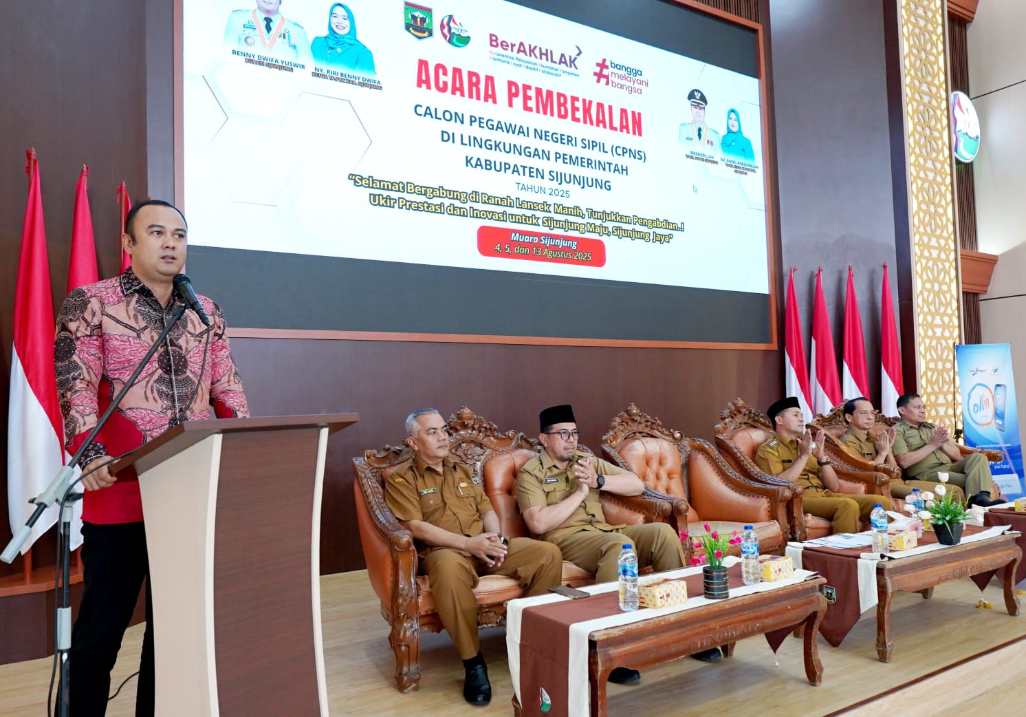 Pembekalan ini dibuka langsung oleh Bupati Benny Dwifa Yuswir, S.STP, M.Si pada Senin 4 Agustus 2025. Pembukaan tersebut turut dihadiri Wakil Bupati Sijunjung, H. Iraddatillah, S.Pt, Sekdakab, DR. Zefnihan, AP. M.Si, Asisten II, Yulizar, MP, dan Asisten III, Drs. Endi Nazir.