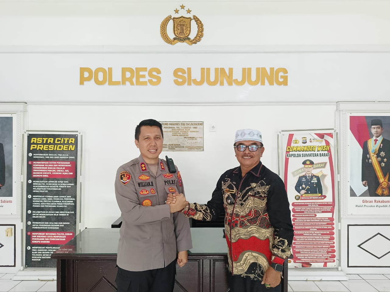 Terlihat saat Kapolres Sijunjung, AKBP Willian Harbensyah, S.I.K., M.H., menerima proposal dari Walinagari Kampung Dalam H. Lishardi