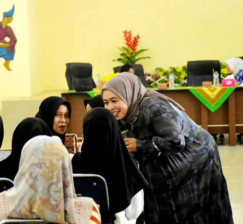 Bunda Literasi Kabupaten Sijunjung Ny Riri Benny Dwifa Didampingi Kabid PAUD dan Pnf menerahkan Bantuan Perlengkapan Sekolah kepada Warga Belajar Paket PKBM Kecamatan Sijunjung.