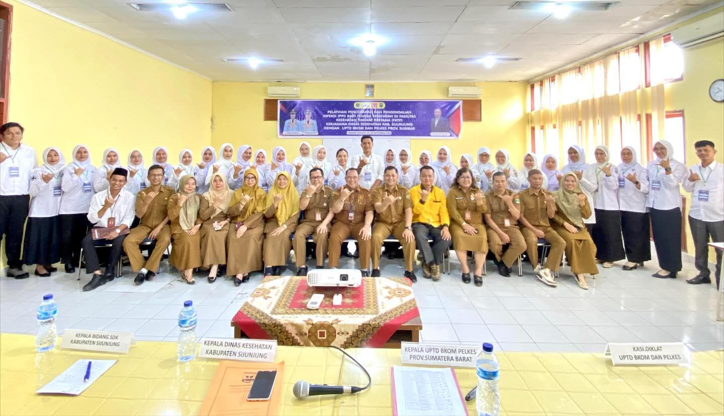 Kadis Kesehatan Sijunjung, Harry Oscar Hidayat,S.STP., M.Si., membuka Pelatihan PPI Di BKOM Pelkes, terlihat foto bersama dengan peserta.