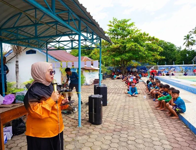 Dalam sambutannya, Ny. Nedia Fitri menyampaikan apresiasi dan terima kasih kepada panitia, para pelatih, orang tua serta para peserta yang turut serta meramaikan kegiatan tersebut sehingga kolam renang yang biasanya sepi, sekarang mulai ramai dikunjungi masyarakat.