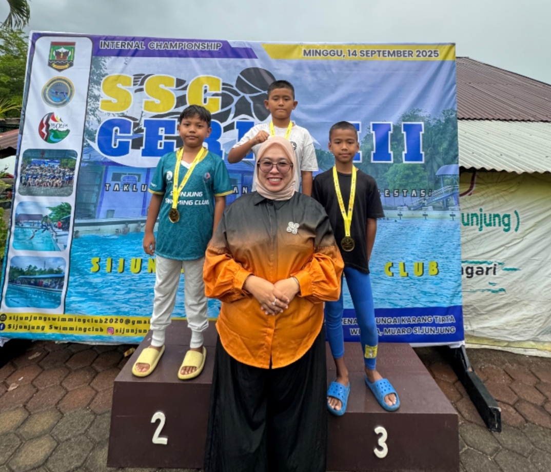 JURNAL SUMBAR| Sijunjung- Ketua SOIna Kabupaten Sijunjung, Sumatera Barat, Ny. Nedia Fitri Benny Dwifa, membuka secara resmi Kejuaraan Renang Sijunjung Swimming Club (SSC) Ceria III yang digelar Di Kolam Renang Sungai Karang, Pasar Inpres Muaro Sijunjung, pada Minggu 14 September 2025.