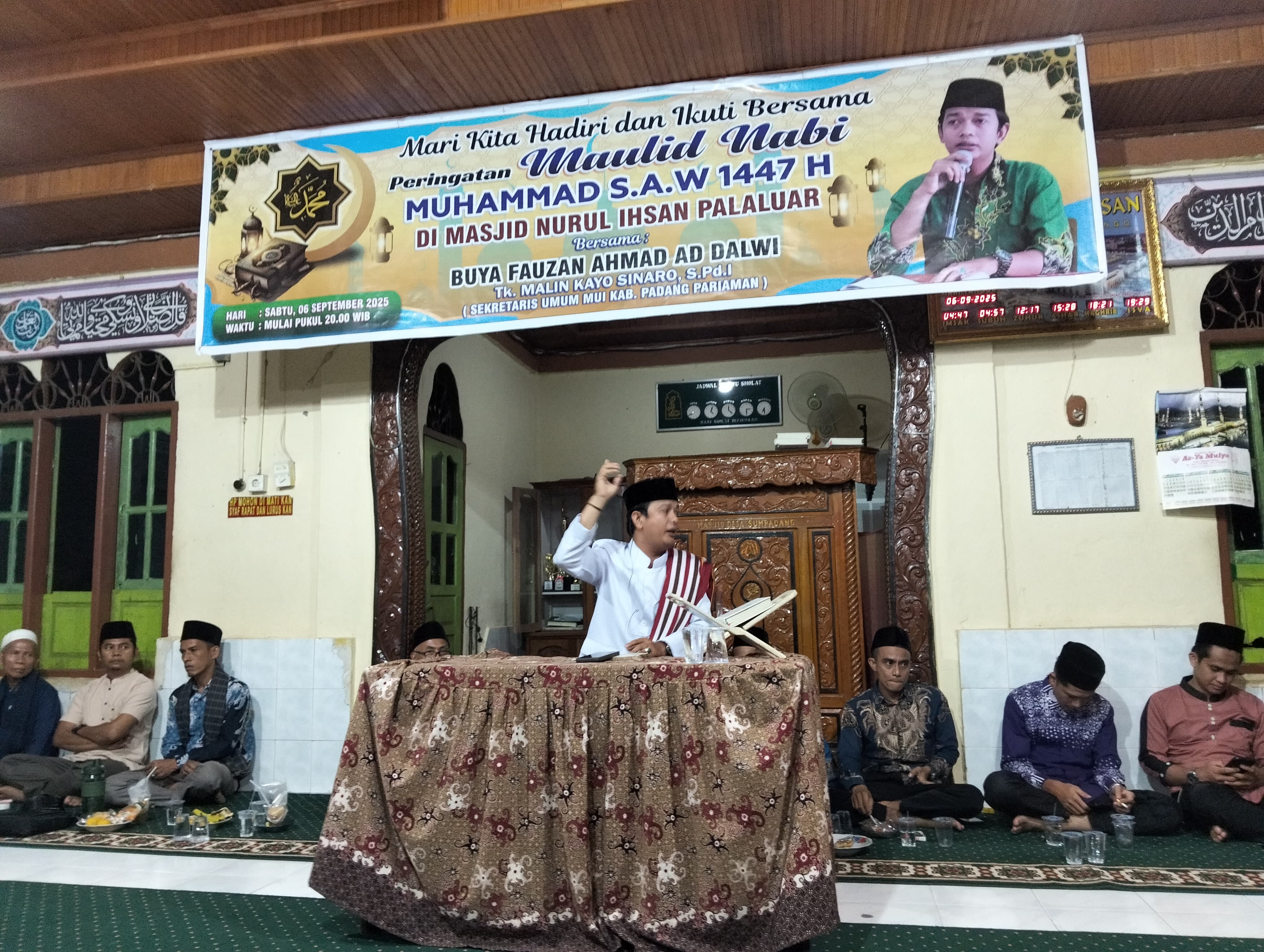 JURNAL SUMBAR| Sijunjung – Warga Nagari Palaluar, Kecamatan Koto VII, Kabupaten Sijunjung, Sumatera Barat, pada Sabtu (6/9/2025), memperingati Maulid Nabi Muhammad SAW tahun 1447 H, Di Masjid Nurul Ihsan Palaluar, bersama penceramah Buya Fauzan Ahmad Ad Dalwi Tuangku Malin Kayo Sinaro, S.Pd.I.