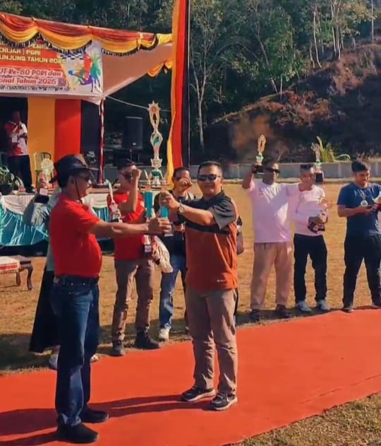 JURNAL SUMBAR | Sijunjung- Setelah tiga hari (Kamis – Sabtu, 4 – 6/9/25) delapan Cabang PGRI Kabupaten Sijunjung, menggelar kegiatan Pekan Olahraga, Seni dan Pembelajaran (Porsenijar), akhirnya, PGRI Cabang Sumpurkudus berhasil menyabet juara umum dengan perolehan medali emas 7, perak 3 dan perunggu 4.