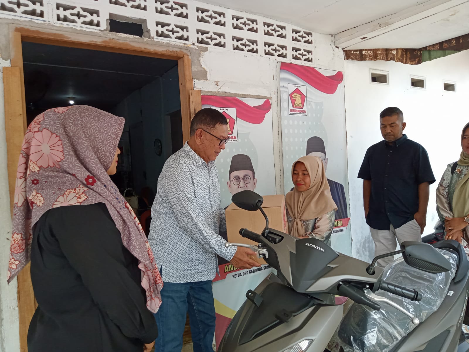 Tepati Janji; Melalui Ketua DPC Partai Gerindra Sijunjung, Andre Rosiade Serahkan Bantuan Sepeda Motor kepada Guru TK Di Langki