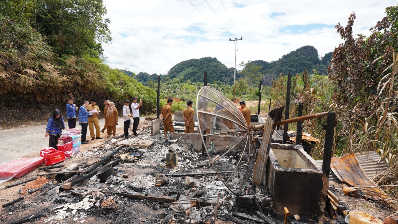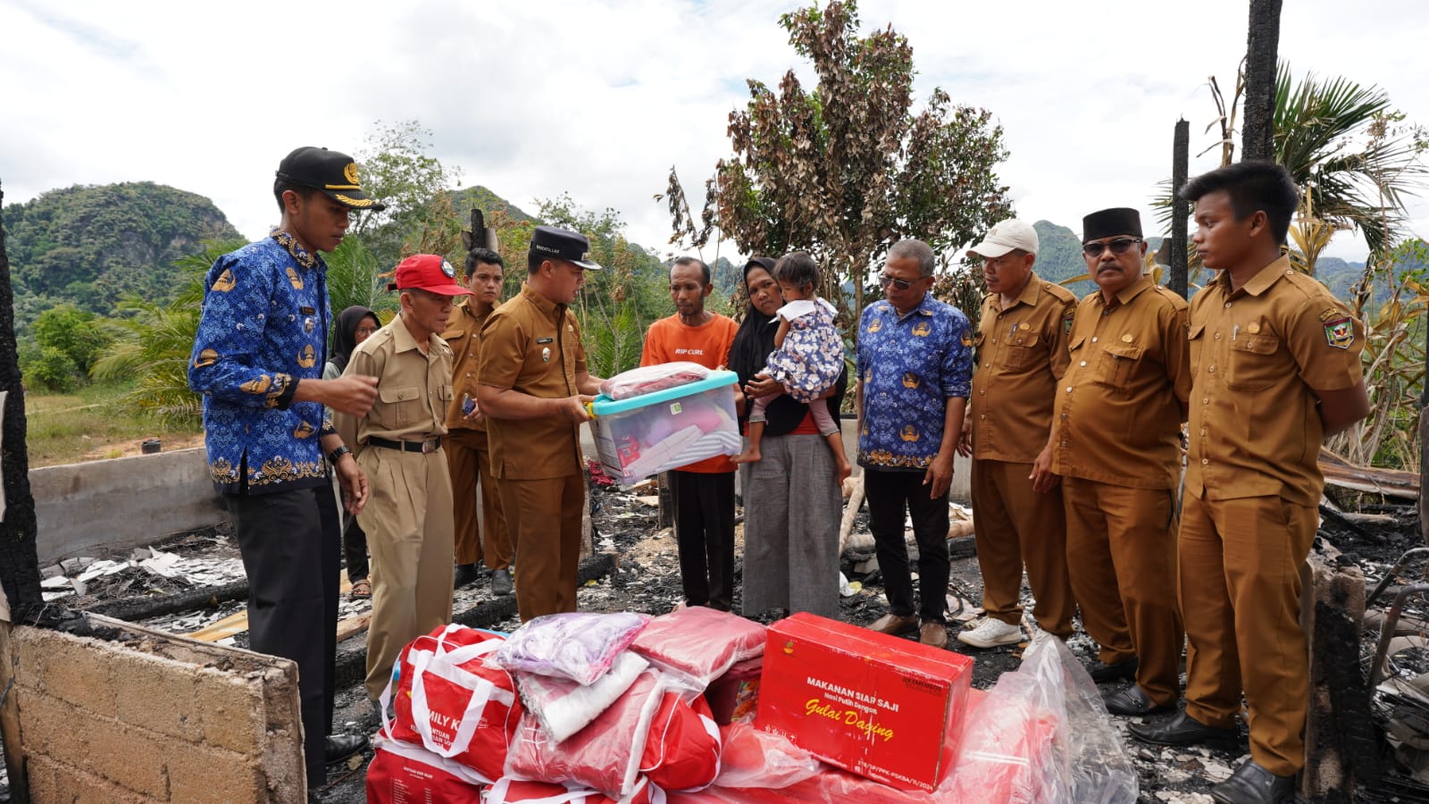 Keluarga korban kebakaran terima bantuan dari Pemkab Sijunjung yang diserahkan Wabup H. Iraddatillah Di Jorong Simaru, Nagari Tamparungo
