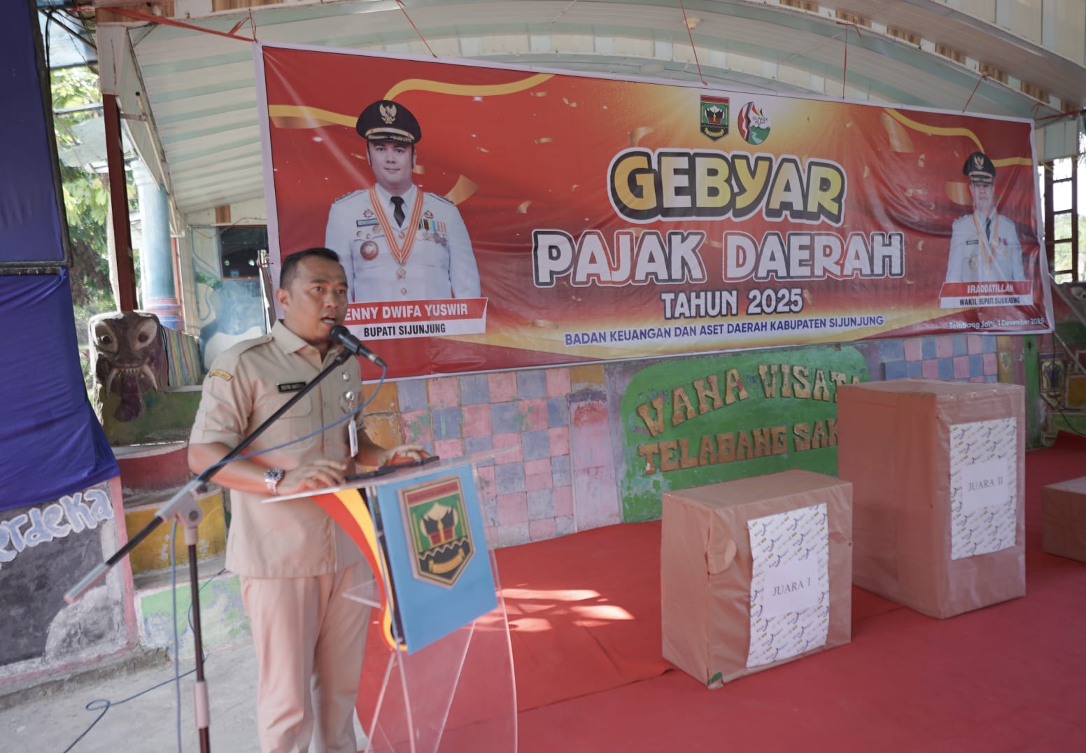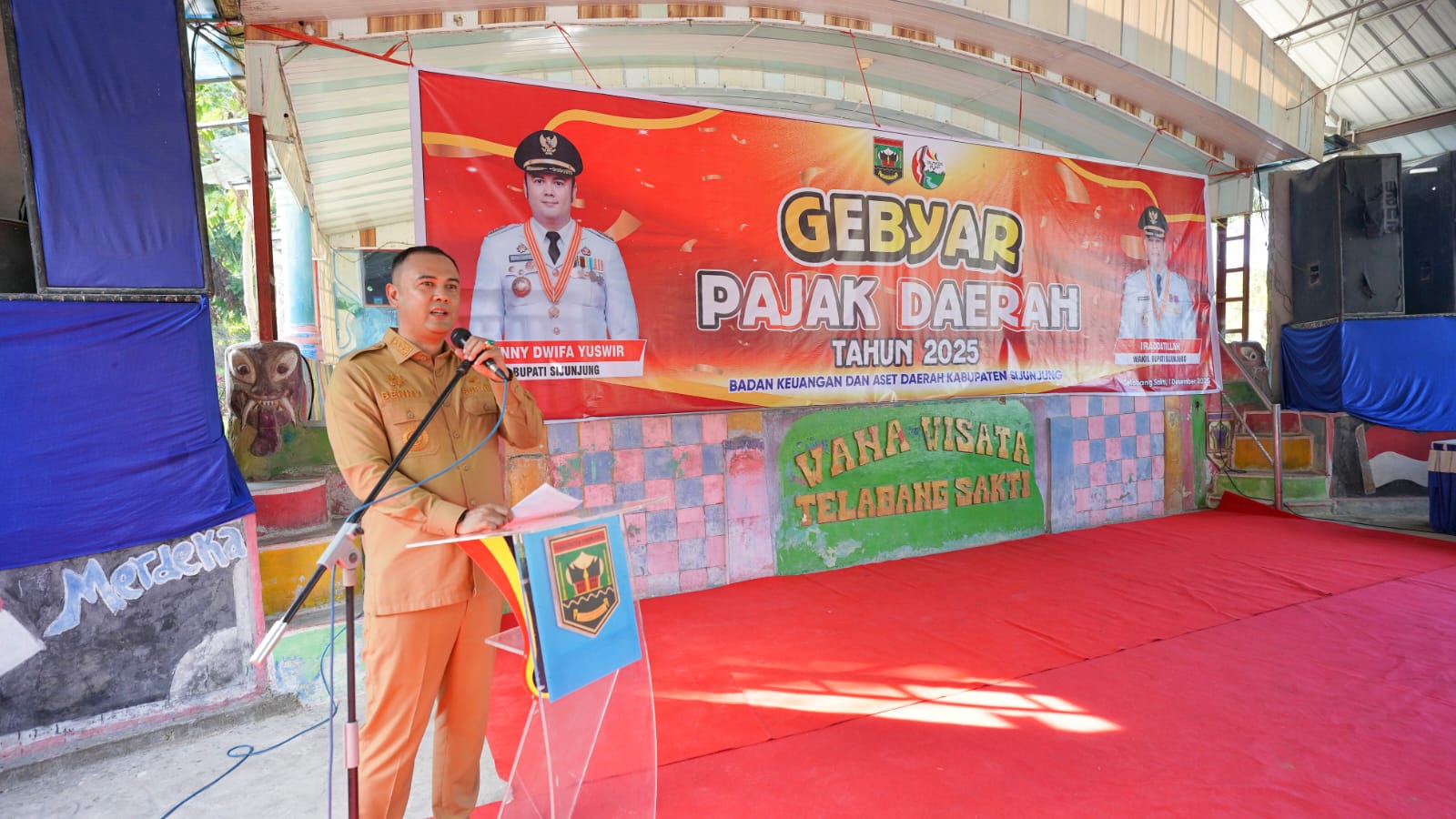 JURNAL SUMBAR| Sijunjung – Bupati Sijunjung, Benny Dwifa Yuswir, S.STP., M. Si., membuka secara resmi acara gebyar pajak daerah yang dilaksanakan di Telabang Sakti, Nagari Kamang, Kecamatan Kamang Baru pada Senin 1 Desember 2025.