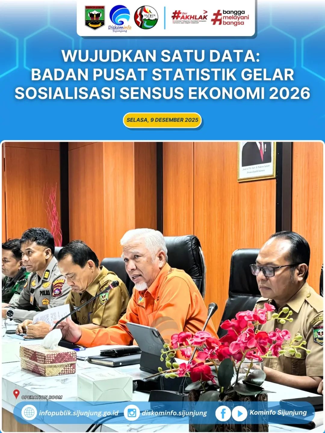 Acara yang dihadiri oleh Asisten II, Ir. Yulizar sebagai perwakilan Sekretaris Daerah, Forkopimda, perwakilan seluruh OPD, instansi vertikal, dan stakeholder terkait ini dilaksanakan di Operation Room Kantor Bupati Sijunjung dan menghadirkan tiga pemateri kunci yang ahli di bidangnya. Acara dibuka oleh Ir Yulizar yang dalam sambutannya menyampaikan pentingnya Sensus Ekonomi bagi pembangunan ekonomi ke depan.