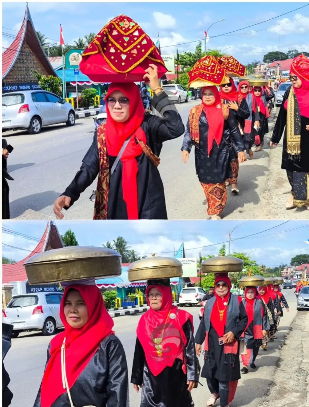 Terlihat ibu-ibu memakai baju kuruang basiba melakukan pawai yang diikuti oleh perwakilan Bundo Kanduang dari Nagari – Nagari yang ada di Kabupaten Sijunjung.