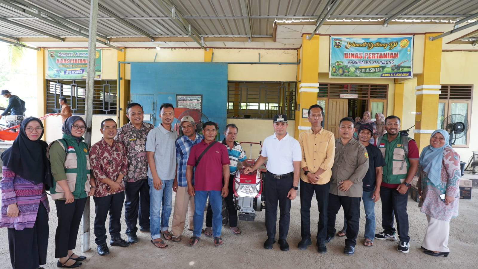 Ke-15 Alsintan yang diserahkan ini diantaranya, satu Traktor Roda 2 (Rotary) yang diserahkan kepada Kelompok Tani Sawah Godang Nagari Limo Koto Kecamatan Koto VII, dua Traktor Roda 2 ( Capung Metal) yang diserahkan kepada Kelompok Tani Beringin Sakti Nagari Sinyamu Kecamatan Tanjung Gadang dan Kelompok Tani Lantai Batu Nagari Taratak Baru Kecamatan Tanjung Gadang. Dan satu lagi Traktor Kura-kura (Hydrotiler ) yang diserahkan kepada Kelompok Tani Citra Tani Nagari Pematang Panjang Kecamatan Sijunjung.